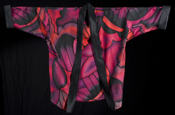the kimono style jacket is updated with slimming waist to hip tapered sides.