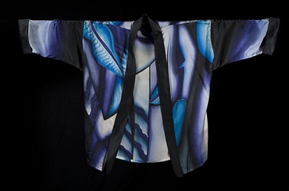 the kimono style jacket is updated with slimming waist to hip tapered sides.