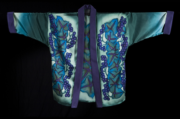 the kimono style jacket is updated with slimming waist to hip tapered sides.