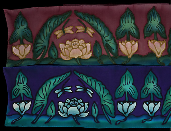 Luxurious, flowing silk hand painted by the artist in rich jewel tones makes of each scarf a collectible piece of wearable art.